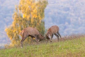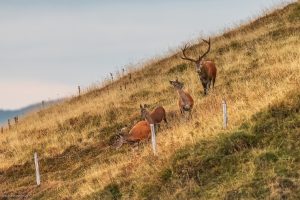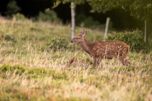 Ce grand cervidé est un hôte emblématique des forêts vosgiennes, représenté sur de nombreux blasons ou armoiries locales. Symbole de puissance et de fierté en raison des imposants bois qui ornent sa tête et lui confèrent un port majestueux, le cerf élaphe est cependant un animal très pacifique et craintif. Pour le promeneur ou le naturaliste, la rencontre avec le cerf est toujours marquée d’une intense émotion.