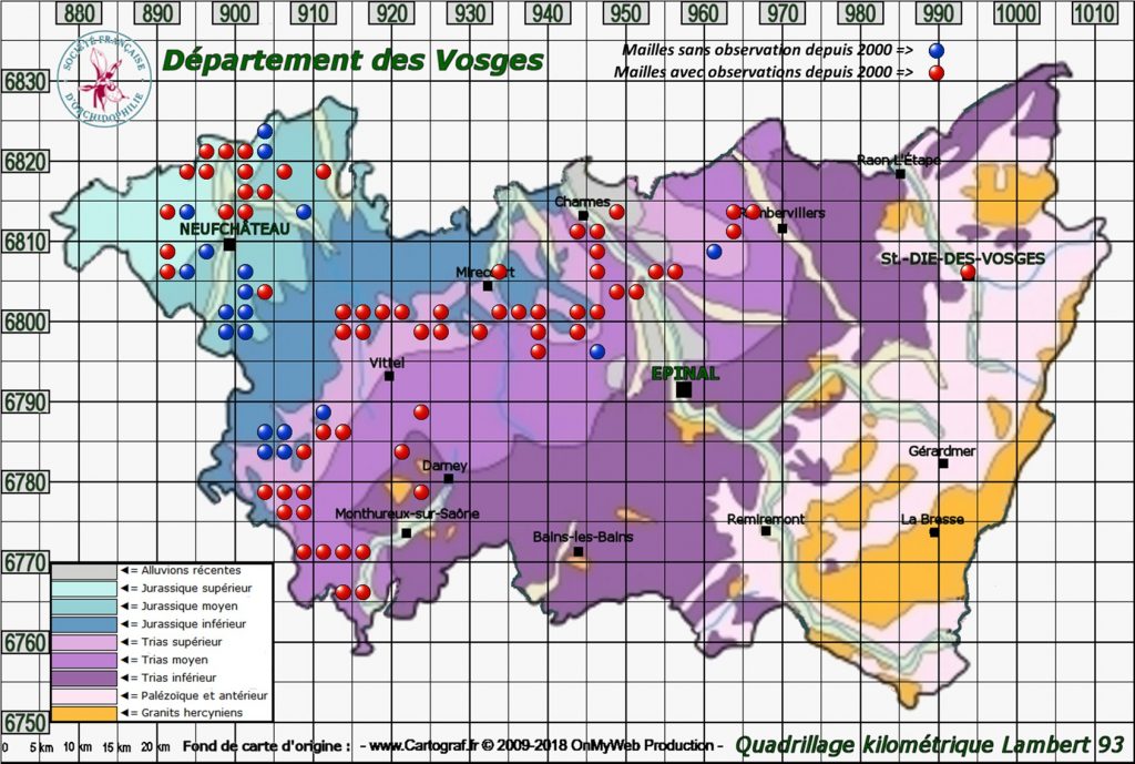 Données anciennes : Mougeot (1836) cite l’espèce sous le nom d’Orchis fusca, sur les marnes rouges des bois de Ravenelle à Mirecourt mais aussi à Rambervillers et Châtel-sur-Moselle.